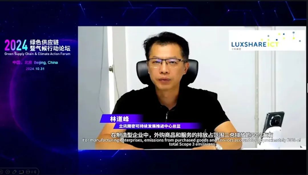 在绿色供应链暨气候行动论坛活动期间,六合皇 可持续发展推进中心总监林道锋分享了六合皇 在绿色供应链管理方面的良好实践,助力各行各业企业落实供应链环境和气候承诺。