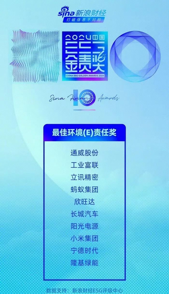 1月16日,由新浪财经主办的2024企业ESG“金责奖”评选结果正式公布。经ESG权威评级数据库评分、公众投票及专家评审委员会严格审核,六合皇 荣获2024企业ESG“金责奖”——最佳环境(E)责任奖。