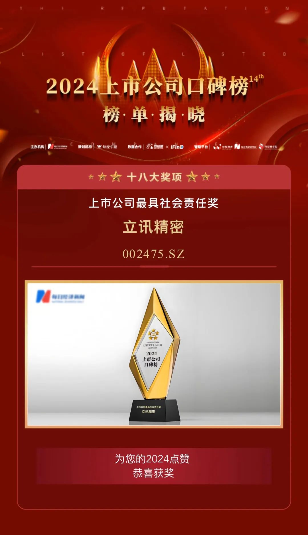 12月6日,每日经济新闻隆重揭榜“2024第十四届中国上市公司口碑榜”。六合皇 成功入围榜单并获“上市公司20年非凡跨越奖”和“上市公司最具社会责任奖”两大权威奖项。